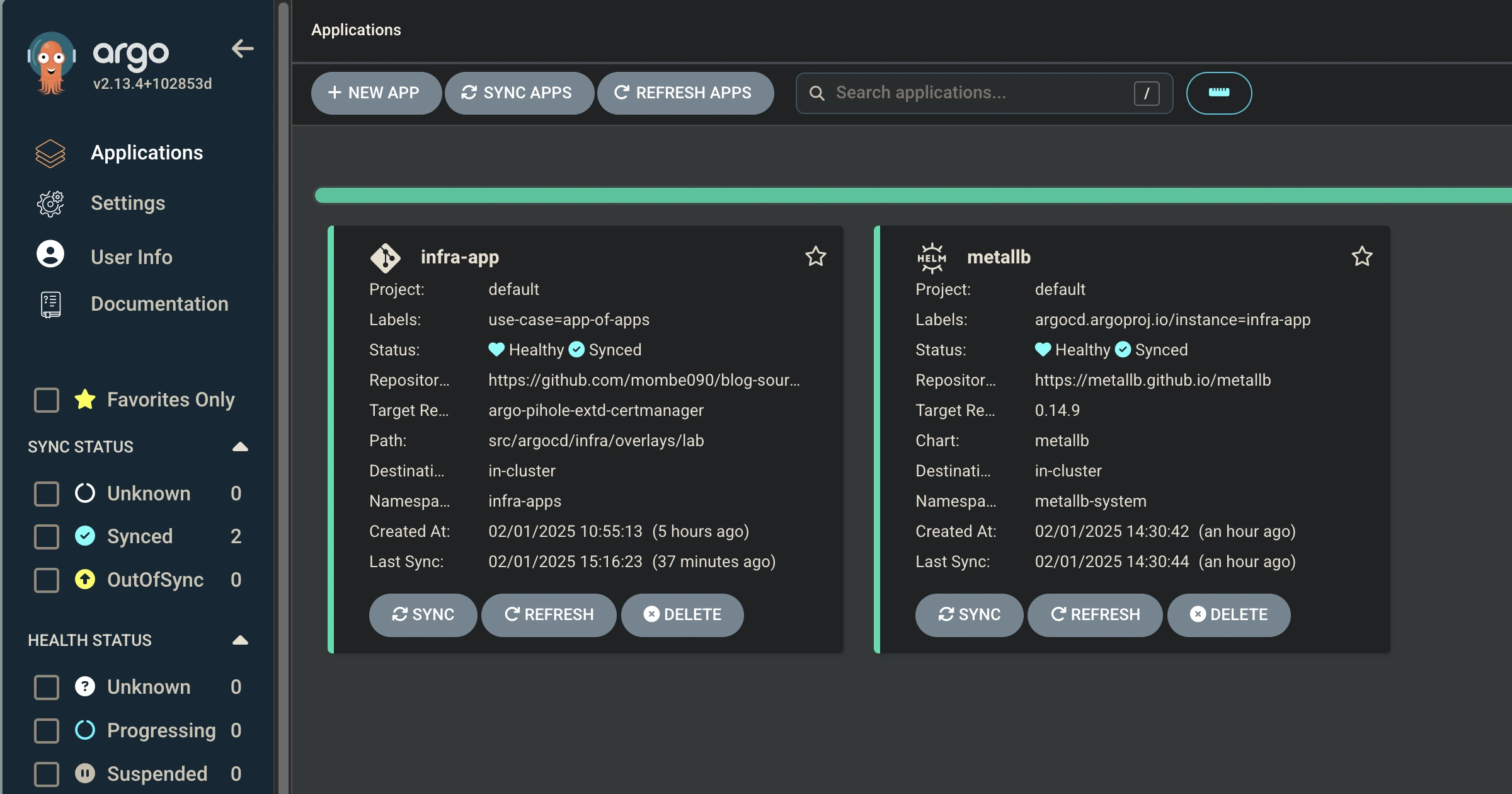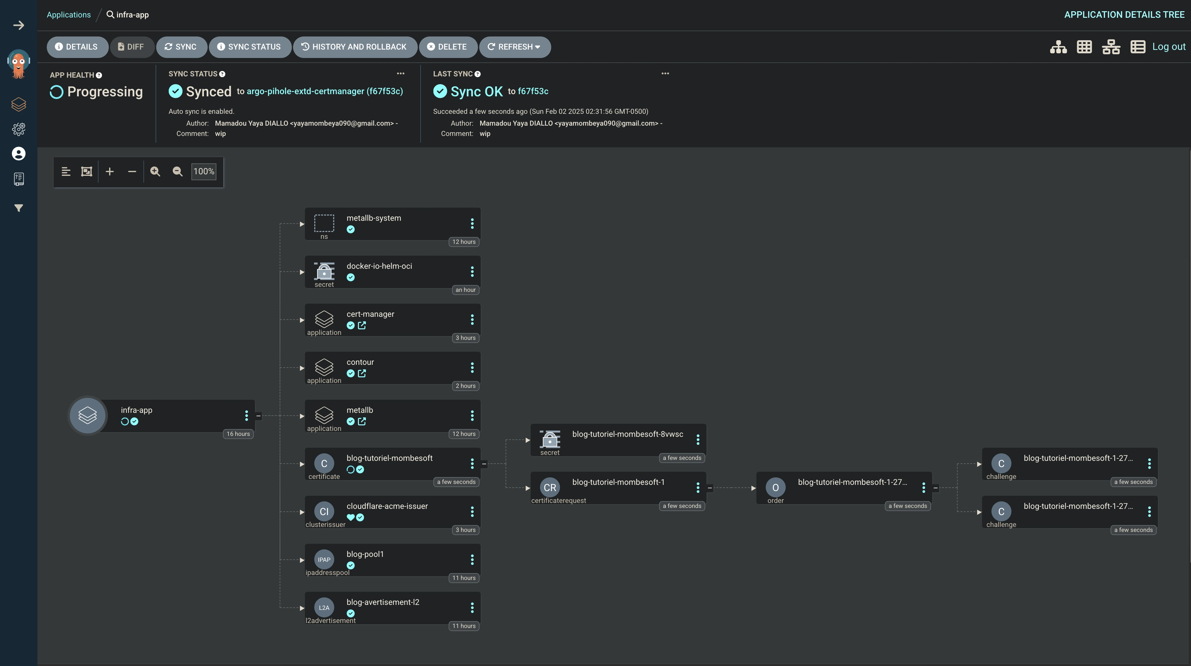 mirror.gcr.iopour les images dudocker.ioafin d’éviter de tomber sur les érreurs de rate limit du dockerhub.Note : tous les changements sont sur ce dépot sur la branch argo-pihole-extd-certmanager