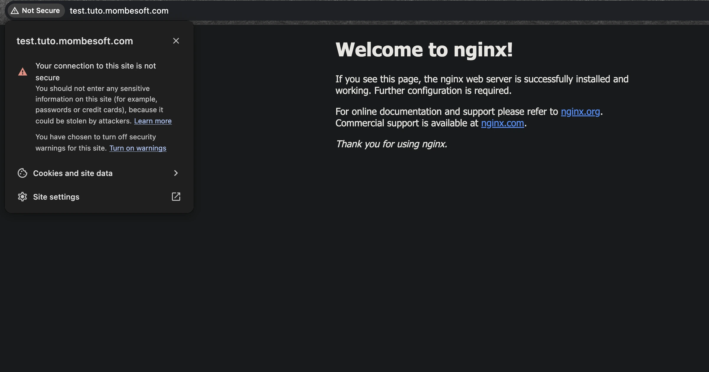 Acceder à l’application nginx sur le https://myapp.tuto.votre-domaine.com :